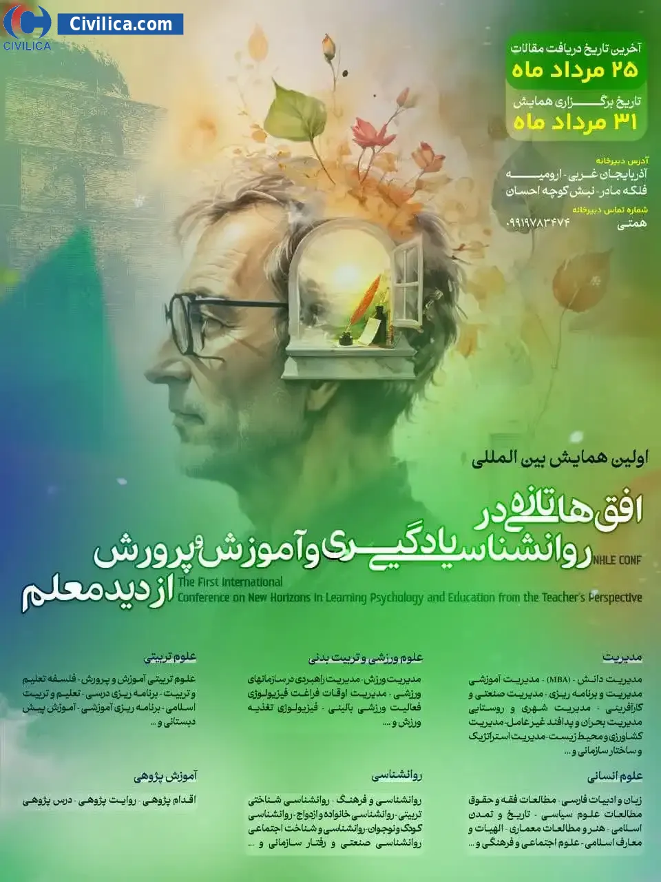 The First International Conference on New Horizons in Learning Psychology and Education from the Teacher's Perspective In date 2025-08-27 by ,همیاران آینده ساز in City Urmia was held. please refer to the following link to download all the papers of conference proceedings: Proceedings The First International Conference on New Horizons in Learning Psychology and Education from the Teacher's Perspective