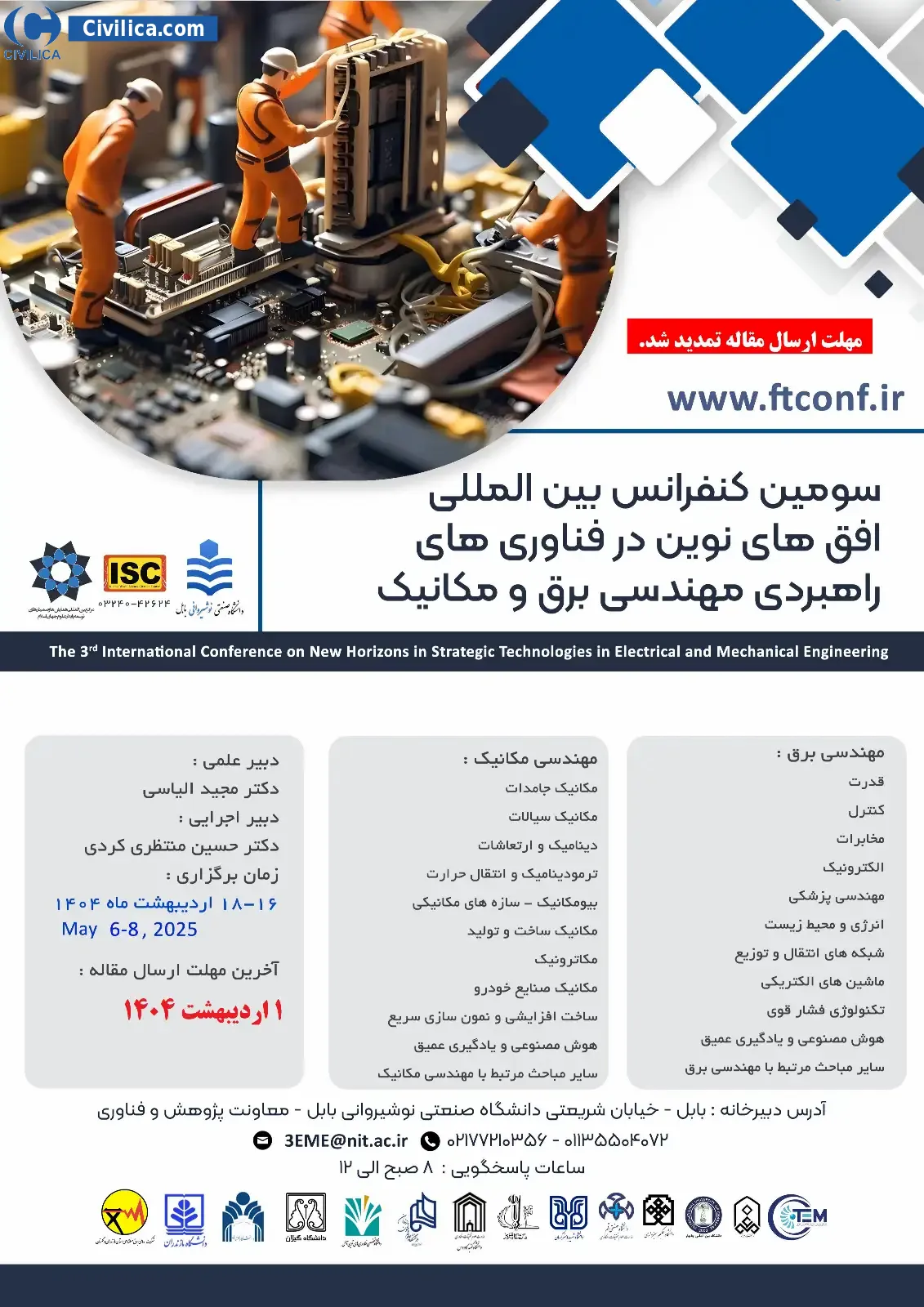 The 3rd International Conference on New Horizons in Strategic Technologies in Electrical and Mechanical Engineering In date 2025-05-06 by Babol Noshirvani University of Technology, in City Babol was held. please refer to the following link to download all the papers of conference proceedings: Proceedings The 3rd International Conference on New Horizons in Strategic Technologies in Electrical and Mechanical Engineering