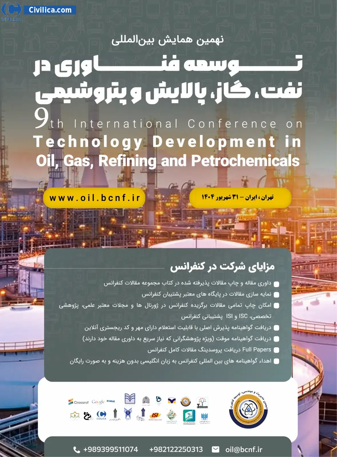 the Ninth International Conference on Technology Development in Oil, Gas, Refining and Petrochemicals In date 2025-09-22 by , in City Tehran was held.This conference is held by Civilica Sponsoring and articles and will be indexed in CIVILICA