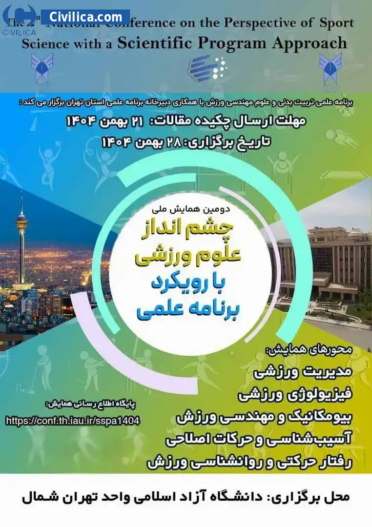 The Second National Conference on the Perspective of Sports Sciences with a Scientific Program Approach In date 2026-02-17 by Islamic Azad University of North Tehran, in City Tehran will be held.Since the conference held officially, all of this Conference paper and proceedings will be indexed in the Civilica database and Iranian Consortium of National Content (ICNC) and you can have full confidence.