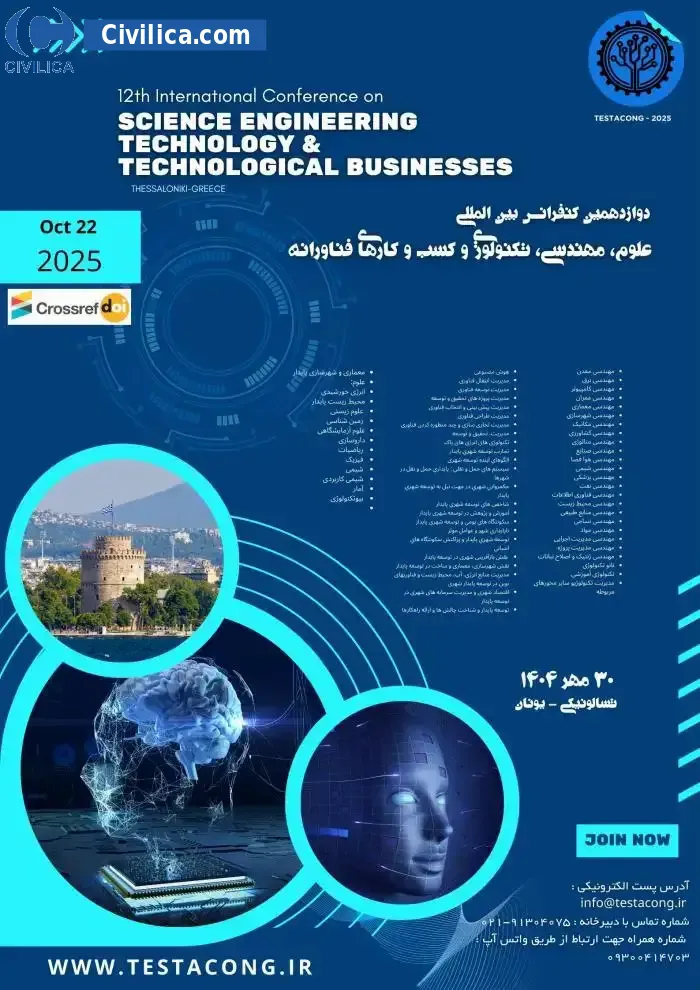12th International Conference on Technology, Engineering, Science and Technological Business In date 2025-10-22 by ,همایش آروین البرز was held. please refer to the following link to download all the papers of conference proceedings: Proceedings 12th International Conference on Technology, Engineering, Science and Technological Business