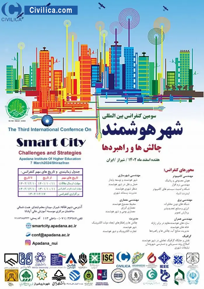 The Third International Conference on Smart City, Challenges and Strategies In date 2024-03-07 by Institute of Higher Education Apadana, in City Shiraz was held. please refer to the following link to download all the papers of conference proceedings: Proceedings The Third International Conference on Smart City, Challenges and Strategies