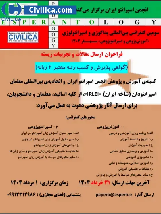 TThe Third International Conference on Pedagogy and Esperantology– Spring 2025 In date 2025-07-23 by ,انجمن اسپرانتو ایران in City Tehran was held. please refer to the following link to download all the papers of conference proceedings: Proceedings TThe Third International Conference on Pedagogy and Esperantology– Spring 2025