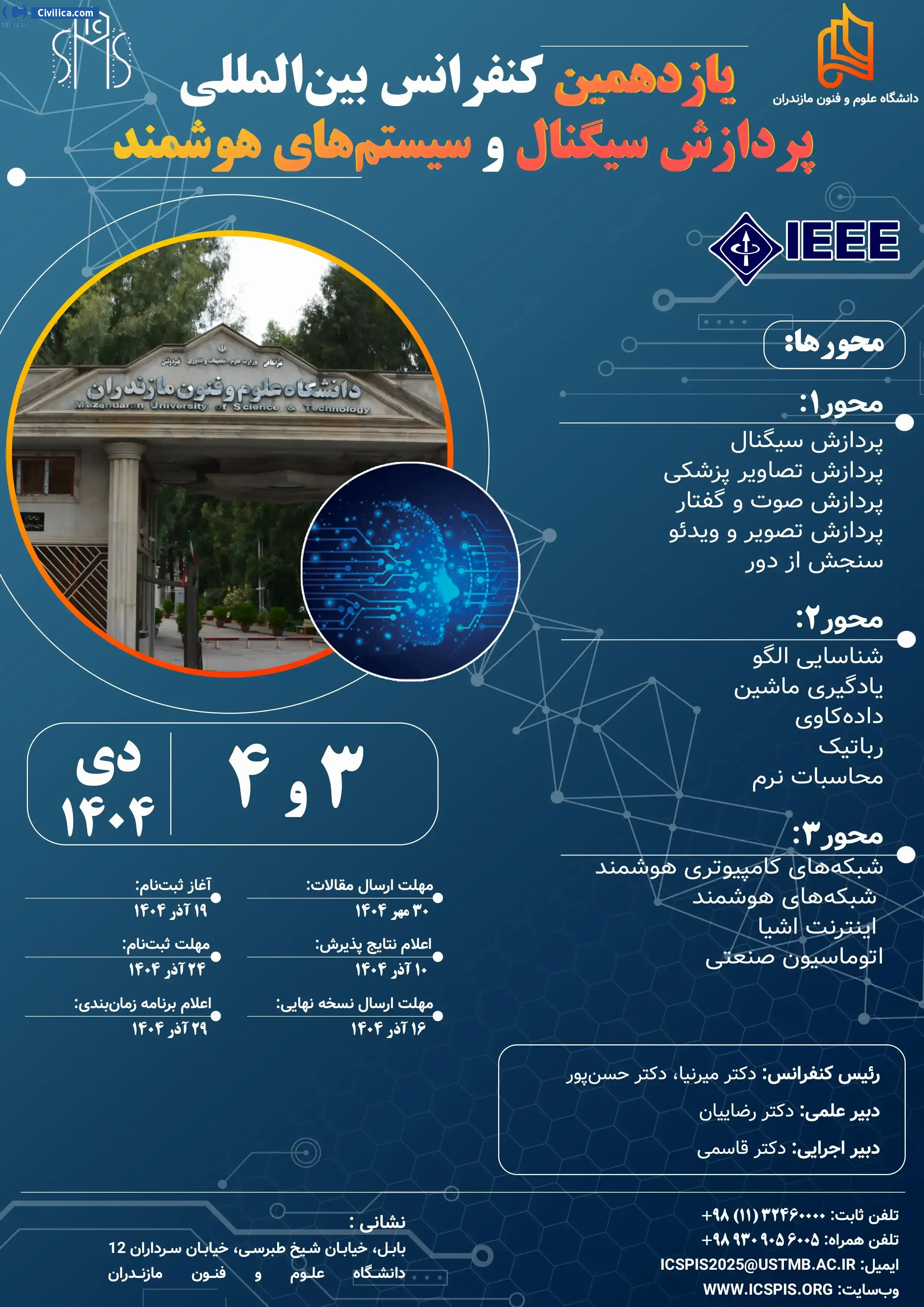 The 11th International Conference on Signal Processing and Intelligent Systems In date 2025-12-24 by Mazandaran University of Science and Technology, in City Babol will be held.Since the conference held officially, all of this Conference paper and proceedings will be indexed in the Civilica database and Iranian Consortium of National Content (ICNC) and you can have full confidence.