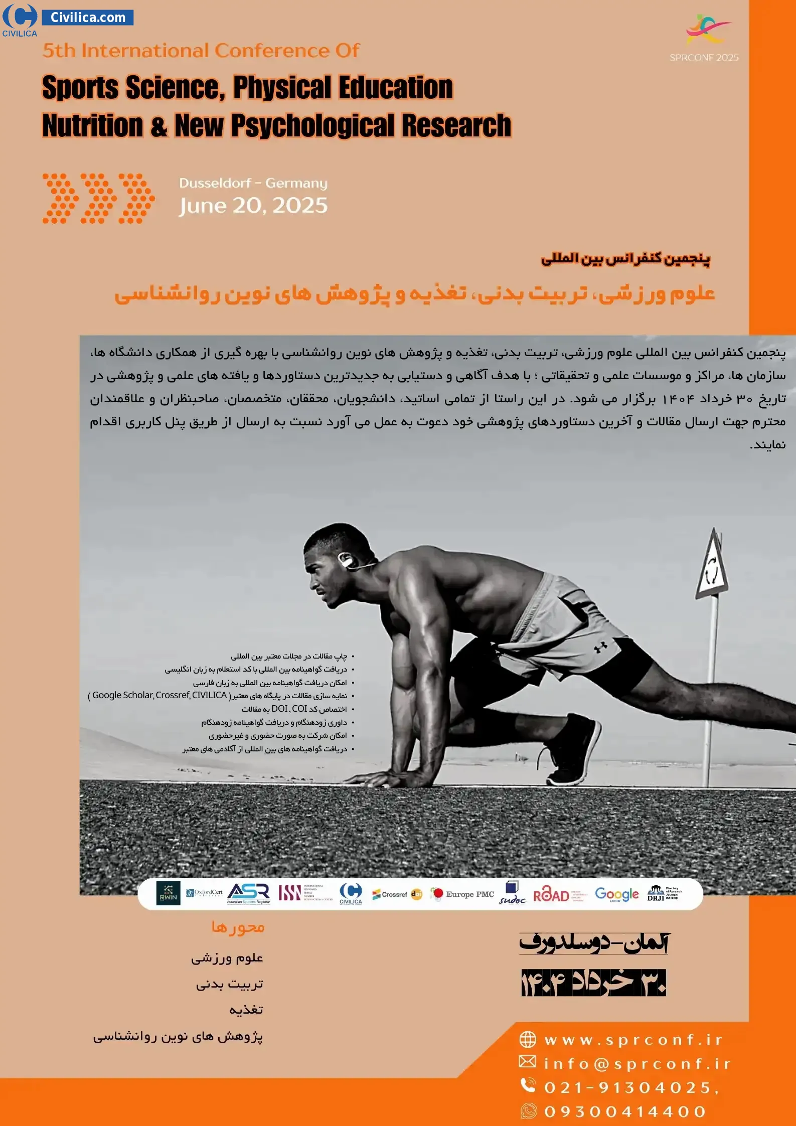 5th International Conference Of Sports Science, Physical Education, Nutrition and New Psychology Research In date 2025-06-20 by ,همایش آروین البرز was held. please refer to the following link to download all the papers of conference proceedings: Proceedings 5th International Conference Of Sports Science, Physical Education, Nutrition and New Psychology Research