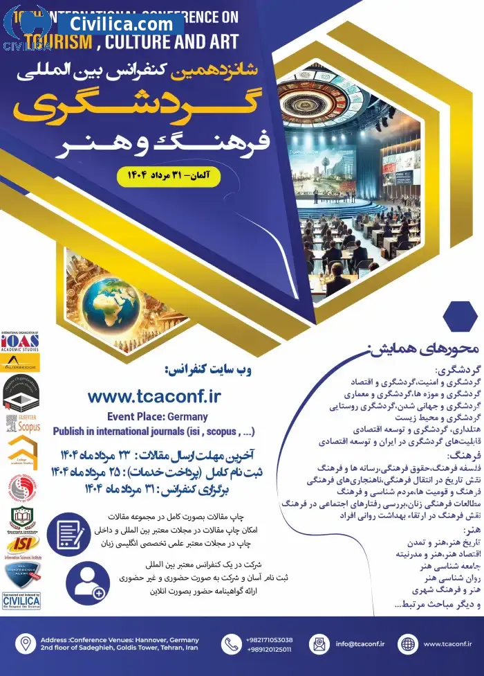 16th International Conference on Tourism, Culture and Art In date 2025-08-22 by ,سازمان بین المللی مطالعات دانشگاهی was held. please refer to the following link to download all the papers of conference proceedings: Proceedings 16th International Conference on Tourism, Culture and Art