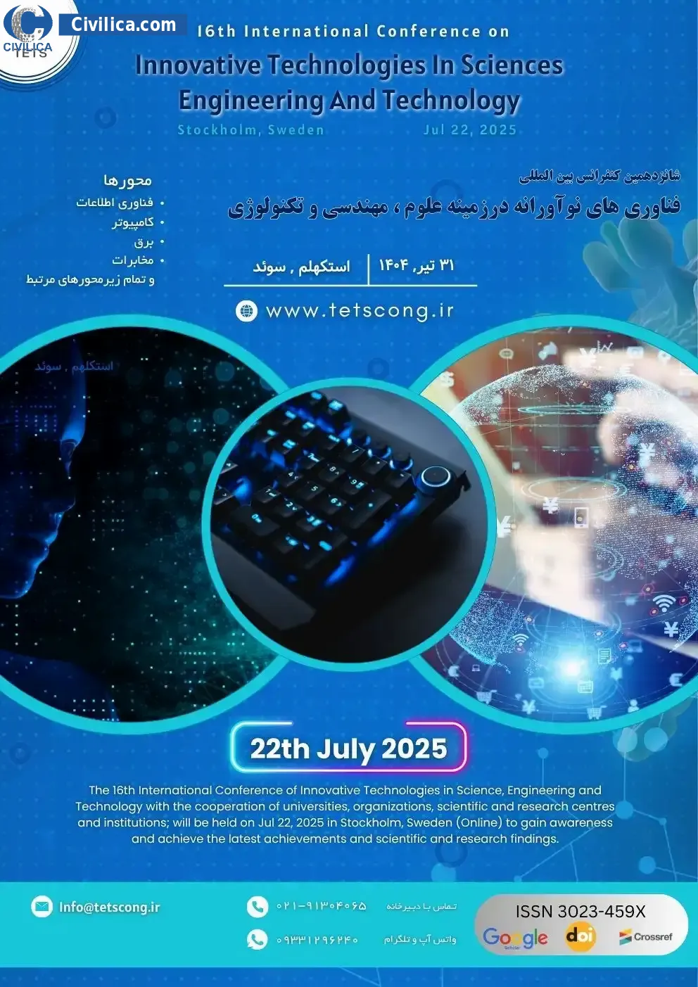 16thInternational conference on Innovative Technologies in Engineering, Sciences and Technology In date 2025-07-22 by ,همایش آروین البرز was held. please refer to the following link to download all the papers of conference proceedings: Proceedings 16thInternational conference on Innovative Technologies in Engineering, Sciences and Technology