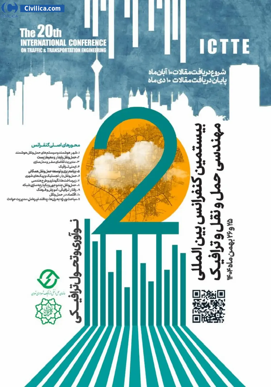 The 20th International Conference on Traffic & Transportation Engineering In date 2026-02-14 by ,سازمان حمل و نقل ترافيك in City Tehran will be held.Since the conference held officially, all of this Conference paper and proceedings will be indexed in the Civilica database and Iranian Consortium of National Content (ICNC) and you can have full confidence.
