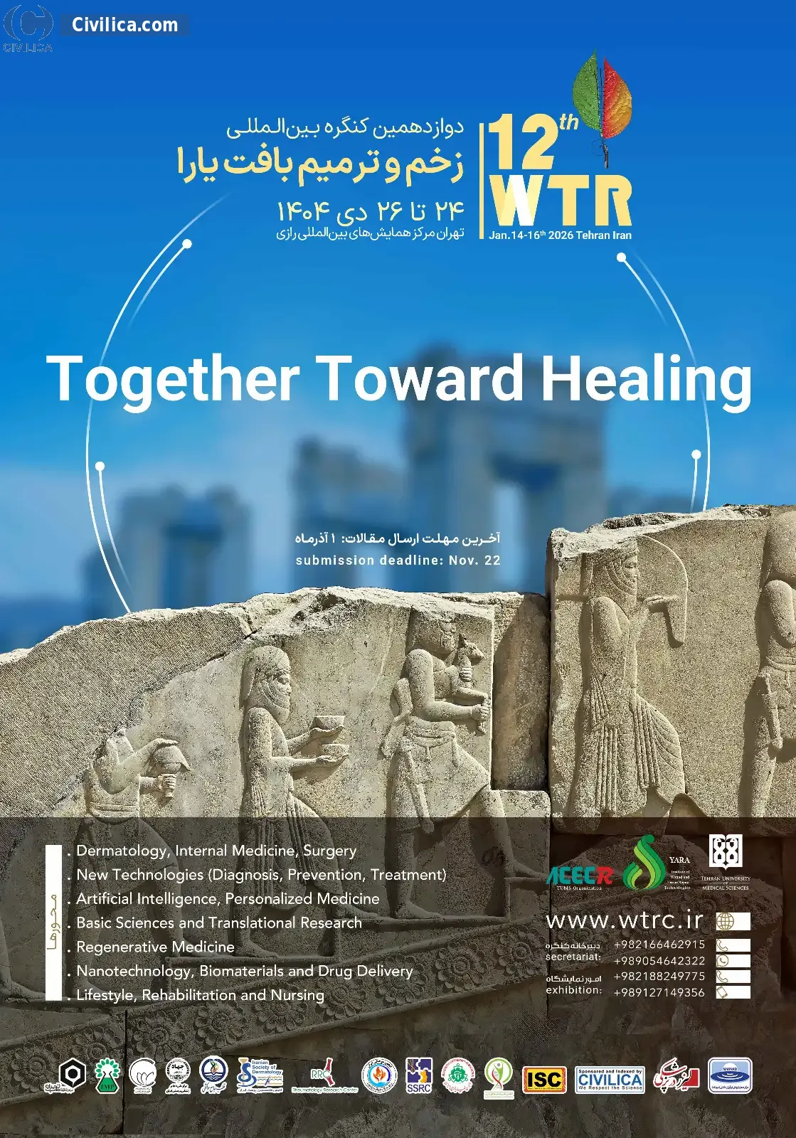 12th International Congress of Wound and Tissue Repair Yara In date 2026-01-14 by Tehran University of Medical Sciences,سازمان جهاد دانشگاهی علوم پزشکی تهرانپژوهشکده فناوری های زخم و ترمیم بافت یارا in City Tehran will be held.Since the conference held officially, all of this Conference paper and proceedings will be indexed in the Civilica database and Iranian Consortium of National Content (ICNC) and you can have full confidence.