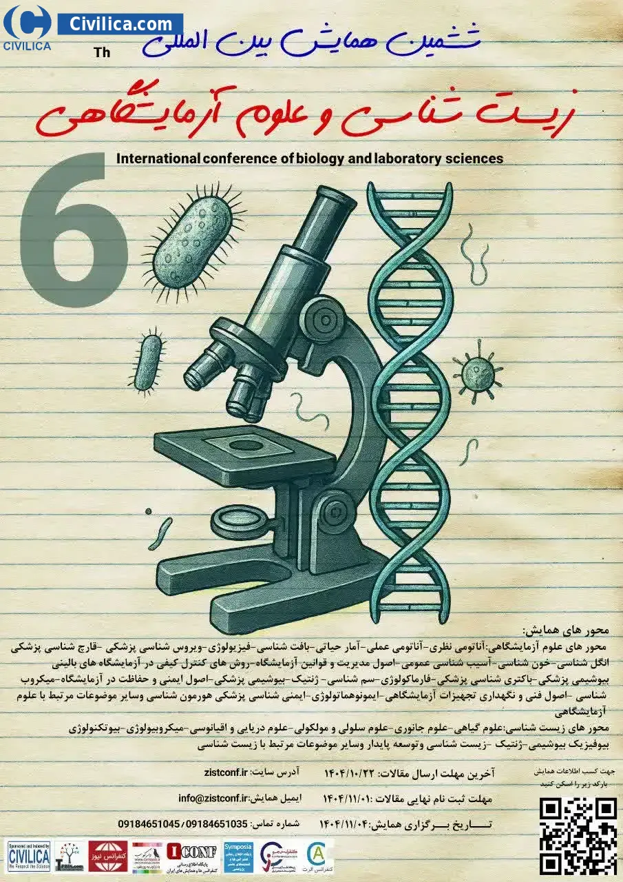 6th International Conference on Biology and Laboratory Sciences In date 2026-01-24 by ,دبیرخانه دائمی همایش in City Hamadan will be held.Since the conference held officially, all of this Conference paper and proceedings will be indexed in the Civilica database and Iranian Consortium of National Content (ICNC) and you can have full confidence.